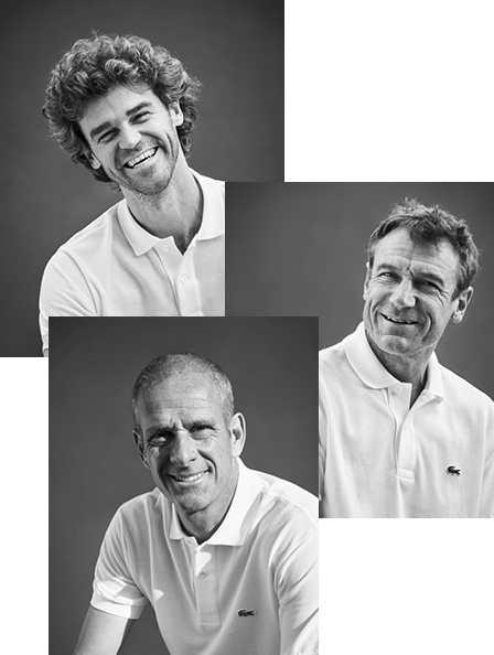 Гі Форже (Guy Forget), Густаво Куертен (Gustavo Kuerten) і Матс Віландер (Матс Віландер) — три незабутні міжнародні гравці, які не тільки мають тісні відносини з брендом Lacoste, але й дбайливо ставляться до його цінностей.